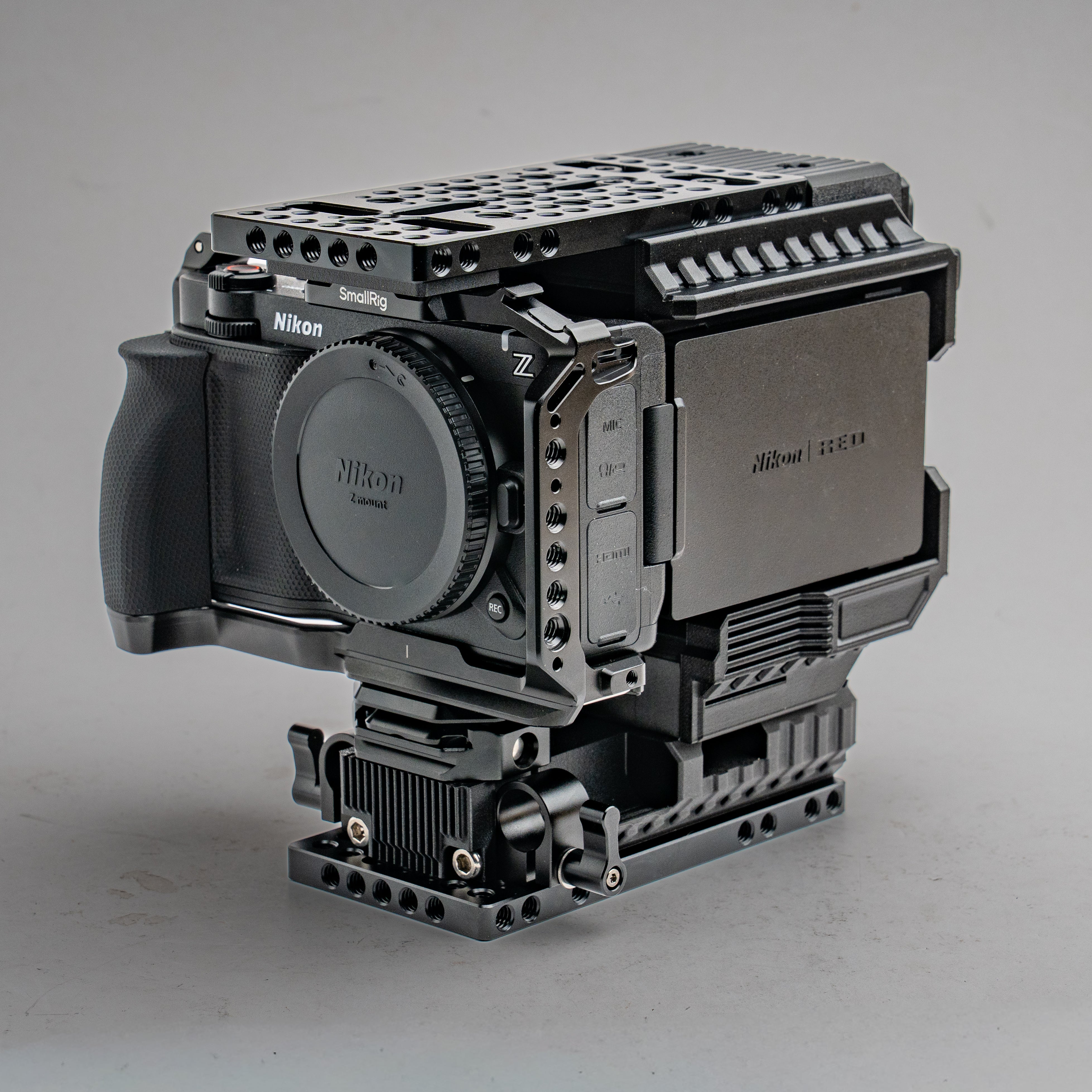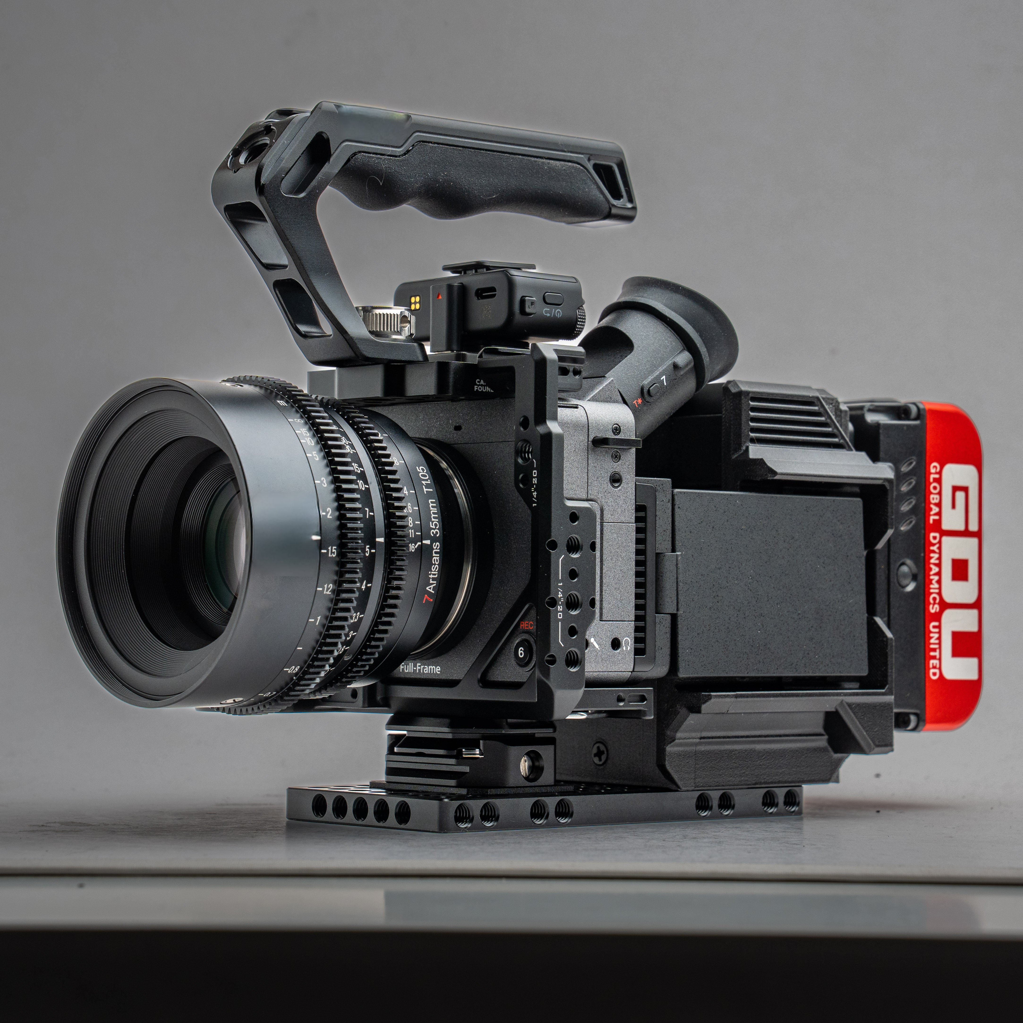 I thought a lot about buying it, because of the additional tax and high shipping to Germany (overall that’s additional 130-150€). But after building my rig I don’t regret it, its just an awesome base for a rig of my (giant) size. I can recommend it to everyone who wants to build a bigger rig that is still sturdy, has good balance and a classic cinema camera formfactor. I have added a D-Style Top Handle, giant V Mount battery (280wh) and the Fuji 18-55zoom lens with lots of accessories. The cineback helps creating the classic formfactor with all its mounting points, the great sideview monitor placement and power options. The overall stability of this rig is like a tank, it feels like its an original camera body and not like smashing lots of rigging parts together.