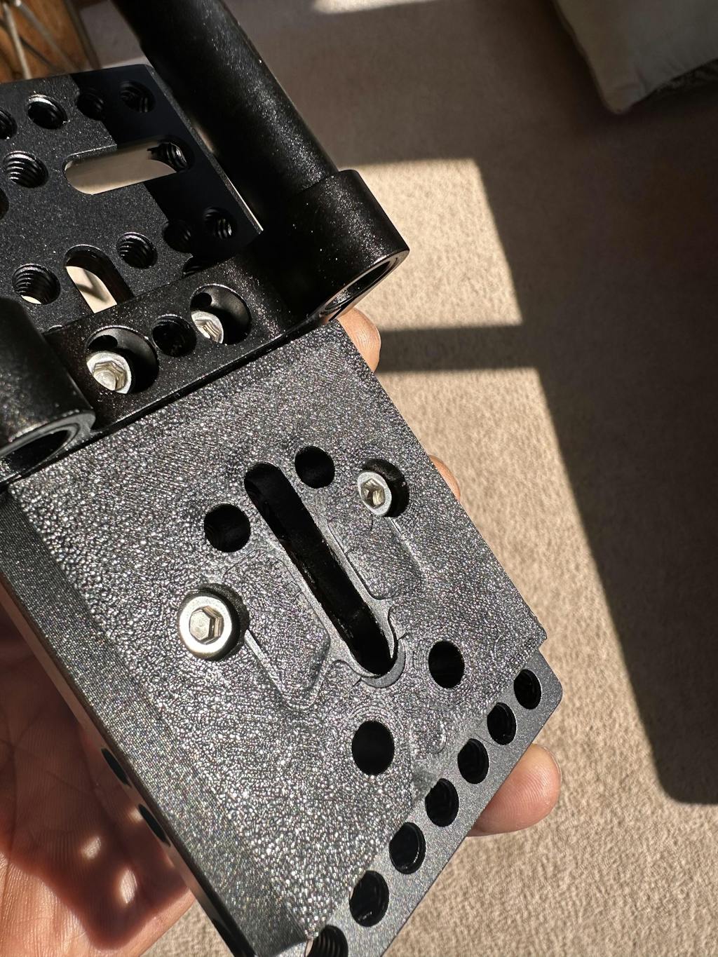 - Large cheese plate for tripod plates, shoulder pads and other gear